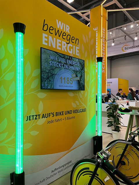 Je schneller der Teilnehmer tritt, des heller leuchtet der Weihnachtsbaum.
